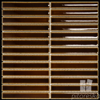Kitkat mosaics in the standard version are in 2x14.5 cm size and are pre-installed on a 30x30 cm sheet. The thickness of the mosaic is 8 mm. The surface of the elements is dented - the edges are higher than the center. Mosaics are frost-resistant and suitable for walls.